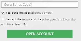 In order to open an account or register, visit their official website. There will be a green sign up button on the upper right corner. On clicking that, a signup form will appear where all the fields need to be filled and checked with a green mark to proceed.